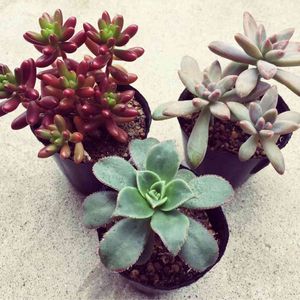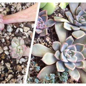 葉挿しっ子たち、無事に冬越ししました。…というか、外で放置していただけなのですが(^-^; 昨年の10/9に葉挿ししたのが右上の写真。こんなにミドリ色だったんですねー。 今は、こんなにピンク色♡ 大きさは、ピンクプリティー、蒼星が2㎝、ブロンズ姫、乙女心は1㎝に成長しました。 オーロラは、本当に成長が遅くて…まだまだ5㎜にも満たないくらいです。葉挿しは向いてないのかも。 大きくなった子たちを、そろそろトレーから鉢に植え替えてあげようと思います(*´꒳`*)