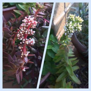 同じ寄せ植え鉢で育ってる火祭りに花が💖 同じ環境で育ってるのに、こんなに紅葉具合に違いが出るのが不思議~😊