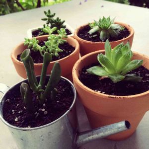 おはようございます(*Ü*)ノ"☀ 今日も暑くなりそう💦 朝から寄せ植え🌱 ちっちゃい子達を集めてみました😄 やっぱり難しい😅 練習あるのみ!? いや…センスかぁ…😩