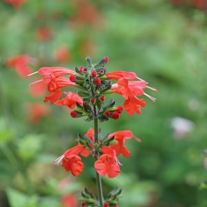 コクシネア シソ科の春まき一年草(扱い) 開花→5月〜11月 肥料食いなので元肥と液肥を併用し株の勢いを維持 別名 ベニバナサルビア