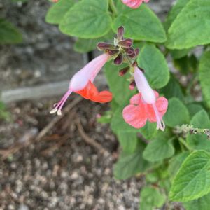ベニバナサルビア・コクネシア・コーラルニンフ(シソ科・アキギリ属) 淡いピンクの優しげな花が、街路樹の下に〜 咲いてるの見つけました🌸🌸🌿ラッキー❣️