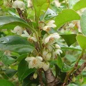 おはようございます。 お庭のサカキが咲いてました。 今までも咲いてたんでしょうけど、 意識して見たのは、初めてかも(笑) わりと大きな花なんですね。