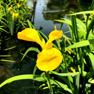 【アヤメ属 黄菖蒲】 Iris pseudacorus いつもの🐩の散歩コース 城跡の公園🏯 お堀に黄菖蒲が咲き乱れてました 黄菖蒲の花言葉は、 「幸せをつかむ」 そうだコロナなんかに負けないぞ ♡(> ਊ <)♡