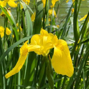 キショウブ(黄菖蒲) 公園の池のほとりで咲き出しました♪ 涼しげに佇む姿が綺麗です✨
