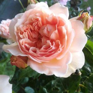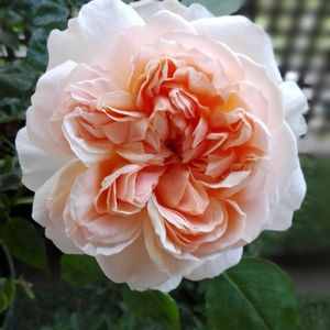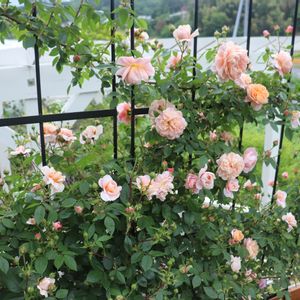 イングリッシュローズ、エブリンの秋花です。香りが本当に素敵です。10年ほど前に植えたのですが、あまりお世話ができなかったのにもかかわらず、大株になりました。最近知ったのですが、廃盤品種になっているのですね!大事に育てなきゃ…。