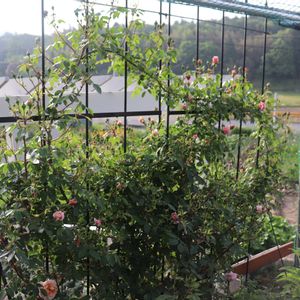 ERのエブリンさん 春はバラゾウくんにやられまくって全くお花を見られなかったけど、ここに来てたくさんのお花をつけてくれました 香水メーカーの名前がつけられたほどの素敵な香りのエブリンさん 今はもう生産停止になっているバラです 咲いてくれて嬉しいです♪