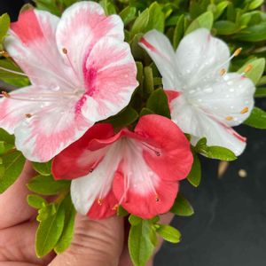 さつき(好月) 今年入手した好月 花芽は3つしかなかったのですが、その3つが咲くとそれぞれ違う模様! 来年は沢山花咲かせるぞー