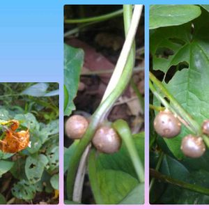 「長 芋 • ムカゴ」 ヤマノイモ科 ヤマノイモ属 庭先の木の根元からツルを伸ばし この時期になると、ムカゴが 着く。今年は早いかな。 土中には長芋が育っていると おもわれるが掘ったことはない。 ちなみに栄養は山芋と同じで 疲労回復、ケガ、出産などで 栄誉を付けたい時、免疫力アップ、活動的に動きたい時は積極的に摂取すると良い。 投稿後、葉の形を調べて、自然薯ではなく、「長芋」に訂正させて頂きました。先にご覧いただいた方、申し訳ございません🙇♂️
