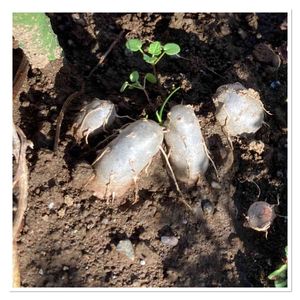 三つ子のムカゴ ナガイモのムカゴ 毎年落ちて芽を出して そろそろ観察終了 😋 2020.8.25 撮影