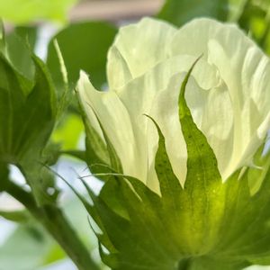 両頬を包むように 葉っぱが花を守る ふわふわの綿は 大切に育てられる