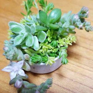 多肉コラボ鉢💕🎶 姫ツキミソウ、多肉…タツナミソ 木は⁉️黄色💛お花が咲きます。