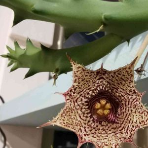急にきた豪雨で慌てて室内へ入れたら いつのまにか咲いてたーー🌼🥴 キミもホッ😮💨としてくれたのかな? あれ?でもケニエンシスではない😳 『あなたの名前は?』 『ヒストリクスだす』 うわー‼️タグ間違ってたよ😅 はじめましてフェルニアヒストリクスさん あんまり臭くないね😶🌫️