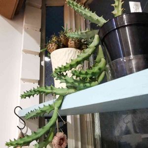 棒の日にフェルニア・ヒストリクスで参加😀 ヒストリクスは滝のように勢いよく下に向かって成長しています😅花もどんだけ下に咲くのかな、って感じ😁。普通の花って受粉の媒介者として飛ぶ虫狙いで、高くて目立つところに咲かせますよね。ガガイモは這う虫狙いぽい。できるだけ低く咲かせに来るのでこうなりました😯 そろそろ千切れるよ😅