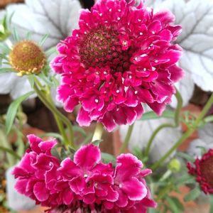 スカビオサ スクープ お店で撮ってきました。 濃い色のお花は、貴婦人の帽子みたいですね🥰 ボリュームというか、ドーム状のお花の厚みがすごいのかな? この時開花していたのはこの3色と白だけだったので、次に行った時にまた違う色を撮ってこようと思ったら、どんどん売れて撮れなかったという😅 私は勉強不足でしたが、大変人気のスカビオサのようです💓