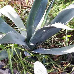 父の畑のお隣さん なんだこれ!デカくてカッコいい植物💦💦 アロエではないみたいなのが… 私の靴も一緒に😅 大きさ伝わるかな~😰