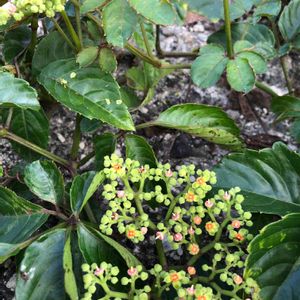 庭のヤブガラシのお花 北側の生垣に生垣より上に咲いてた GSのpicで知りました✌️💕 見向きもしないお花は ヤブガラシの花でした🤣