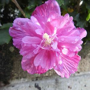 こんばんは~🤓🌙 道すがら見た❗民家の生け垣から覗く綺麗な花🌴☘️🌿 🌸八重咲ムクゲ🌸 🏠家の近所の👟ウォーキング🚶の途中😘 R4年7月27日📸撮影