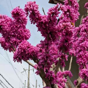 こんばんは〜🙇🌌🌃 今日は朝から晴れ☀ 近所の👟ウオーキング🚶 民家の庭先で🌺咲く❗モリモリのハナズオウ🏵