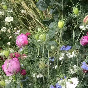 *・゜゚・*:.。.The Kind of Blue*:.。. .。.:*・゜゚・* ニゲラに埋もれて咲きました✨この子は茎がしっかりしているので、お花がみんなお日様のあがる方向を向いて咲いてます。 トゲは凄いし大きくなっちゃったので、お引越しをしましたが、元気に咲いてくれてうれしいです。 この濃パープルは朝に散歩される昔馴染みのおじさんのお気に入りだそうで、バラが引越したのに気がついたかな?って思ってます。