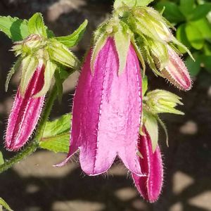早朝、産直へ行く途中、 鮮やかなピンクのホタルブクロ 朝日をいっぱい浴びていました☀️