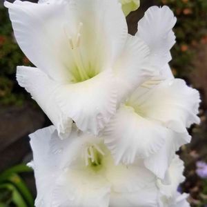おはようございます 早朝産直の途中🚶♀️ いつもお花が綺麗に咲いているお宅で、真っ白なグラジオラスが沢山咲いていました✨