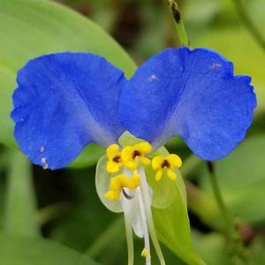 今日の産直帰り🚶♀️ 露草🌱 2枚の花弁は大きく鮮やかな青色、残りの1枚は小さく白い。 おしべは6本あり、そのうちの2本がめしべとともに前に長く突出。 白い花弁、気付かなかった。 アップで見て、なるほどと納得🔍