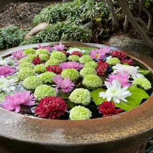 菊のお花🌸 ご近所さんから頂きました 玄関先の睡蓮バチに遊んでみました 可愛い💕
