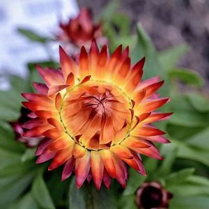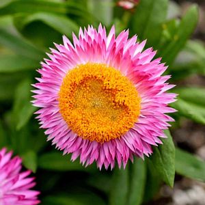 ヘリクリサム キク科で、花が麦わらで作ったようにカサカサして光沢があるので、和名を「ムギワラギク(麦藁菊)」英名を「ストローフラワー」と言います。 私が子供の頃には「帝王貝細工」と呼んでましたが、別名として有るにも関わらず今ではこの名を見ることはほとんどありません。
