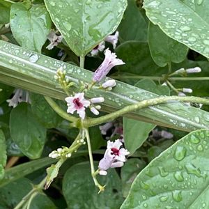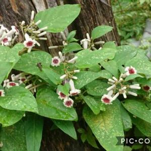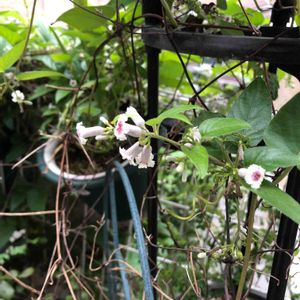 下の公園で 取っても取っても木々に 絡み付いてるツル性の草🌱 可愛い花が咲くんですねー👀 名前がヘクソカズラ⁉️