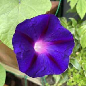 朝顔 シャイニングブルー こぼれ種から開花しました。 今年は早い❗