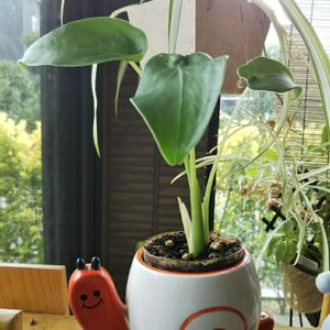 カタツムリの陶器に入れたクワズイモの葉。 約一年前に100均で買ったクワズイモの先端(葉の部分)をポキッと折ってしまい、水に差して根が生えたのを土に植えてみたら上手く根付いてくれたというものです。 秋から冬にかけて枯れかけたけど、春先から新しい葉が生えてきて復活💪🏻✨ 案外強い植物ですねぇ。 今の季節にちょうどいい感じのカタツムリ&葉っぱ🌱🌱🌱