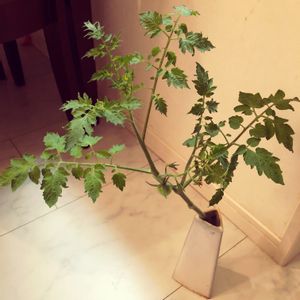 折れてしまっていたミニトマト😱 花瓶に生けて発根待ちしてみる事に… ん?生けても意外と様になっている?かも?