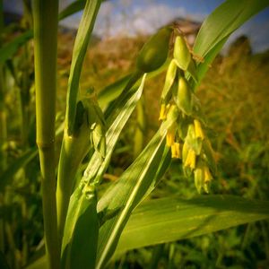 ジュズダマのお花💛💚 実の先から穂が出てます イネ科なんですね🌾 子どもの頃お手玉に入れたり糸で繋いで遊びました👧