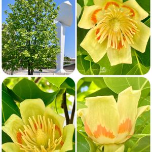 おはようございます😊 💠 ユリノキ 💠 別名;チューリップツリー チューリップ🌷に似ていることから 別名 ;ハンテンボク 🌿が👘ハンテンに似ていることから ①②③3枚あります😊 5月GWといえば💠ユリノキと言うくらい職場表の10本の🌲雄🌲雌の高木に花が咲くけど花は大きな葉の影になり目立たないのかも🌿🌼😅