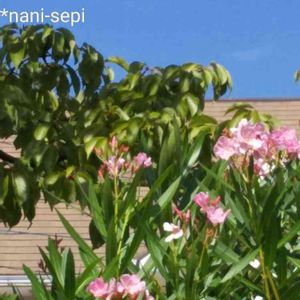戦後75年。 どの年の、夏の空も こんな蒼色だったのかな。 夾竹桃の花。 戦禍を、くぐり抜け、広島、長崎でも、咲き続けた、強い花。赤、白ありますが、私は、赤色が好き。