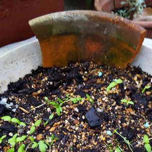 てっ、てぇへんだ! シレネが、かわいい🌱を、出してくれたのに、雨がひどく、倒れてる。😭