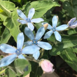 花壇のブルースター。 2株のうち1株は花壇、もう1株は鉢で育てていましたが、花壇にお引越しさせました。 植え替えたとき、5号鉢全体に根が張っていて驚き😳←鉢で育てていたのは1ヶ月ほどでした。 つるのようにどんどん伸びているので、どうしていいか分からない💦 涼しげで好き💖