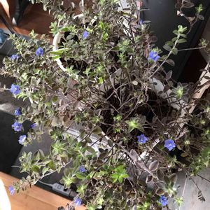 以前冬越しに失敗した経験から 去年は寒くなる前に室内で管理したら 今春は沢山花を咲かせてくれた アメリカンブルー💙 今年も葉が紅葉をし始めたタイムングで 室内へ。 摘心を繰り返し株も一回り大きくなりました。 日の当たる場所に置いてるので まだ花が沢山咲いてますね〜(*^。^*)