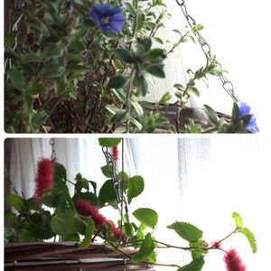 こんにちは(*^ω^*) 晴れた日は窓辺に吊るしてある アメリカンブルーが薄い水色で咲いてくれます🎶 キャッツテールは、ずっと咲き続けてます❤️ 今年は、外でアメリカンブルーが冬越し出来るか実験中。 頑張ってくれるかな〜