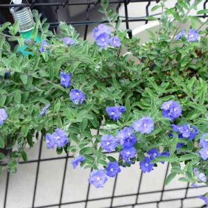おはようございます。・://:・゚’☂ฺ(。・ˇ∀ˇ・)ノ○o。+..:// 今日は アメリカンブルー(エボルブルスブルーマイマインド) 久し振りに一輪咲きました~ 日照不足なのか しばらく葉っぱだけでしたが 今朝咲いてましたよ◝(⑅•ᴗ•⑅)◜..°♡ 葉っぱの産毛のようなモフモフもかわいいですよね❤︎* 雨ですが 素敵な週末を(ღ*ˇ ˇ*)。o♡