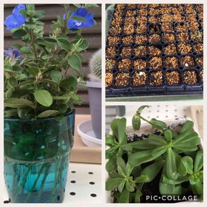 ビオラとパンジー種まきして芽が出てきました、ポーチュラカは挿し芽で冬越しに挑戦、アメリカンブルーも水栽培で発根してるので鉢上げします❣️涼しくなっていそがしくなるなー😊