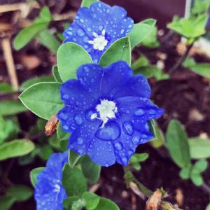 It rains today☂️ アメリカンブルーが雨粒を弾いて色鮮やか✨ It's also a flower on the day when it rains💙