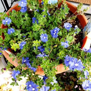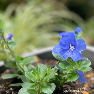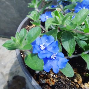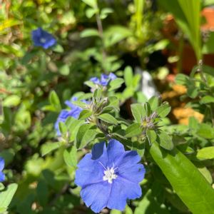 夏が大好きなアメリカンブルー💙 梅雨でも、晴れ間に一気に咲きました。 春のネモフィラブルーに続き、 夏のアメリカンブルーも楽しいです。 この子は、室内で冬越ししました。