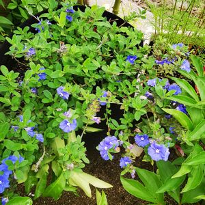 エボルブルス、通称アメリカンブルーの開花です。🌿 ヒルガオ科なので朝夕には閉じます。