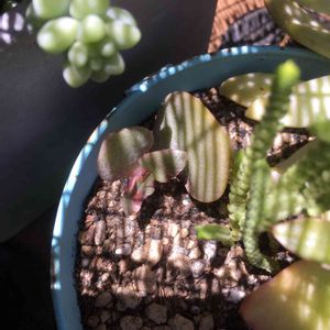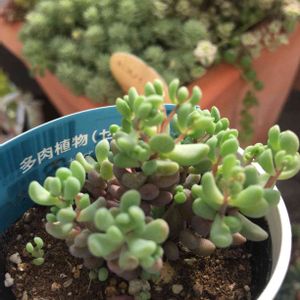 こんばんは🌙 こちら、我が家の謎多肉さん。 カンテって名札が付いてたけど、カンテじゃないってわかってて、 「だったら何者なのかしら?」って気になり、お迎えしました。 がっ! 成長点からお花が咲く始末です💧 本当にカンテだったら泣くよね😂 違うから良かった〜🤣 横から子株が出てきてるので、この後花芽はチョンパしました✂️ あなた一体誰なの😓
