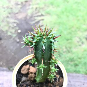 うちの紅彩閣(という名前で買ったもの)🌵 なんか違くない??と思い始めました😅 GSで見てるともっと赤いトゲが沢山生えてきてるし、葉っぱなんて生えてないような…