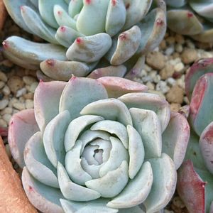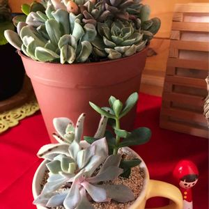 昨年、寄せ植えにもお一人植えにもしてない子をとりあえず集めておいた鉢。 やや忘れていたのだけど、年が明けてなんだか可愛くなってるのを発見✨✨ あなたは誰~? LeoNさんの投稿で、月影とかエレガンス系かも…と思いましたが、どうでしょうか。