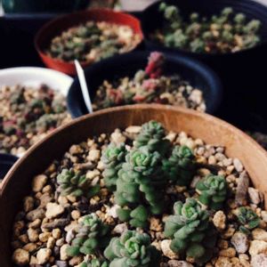 徒長したスプリングワンダーを解体して植え替えた鉢たち。どうしたらキュッとしまるのかな(; ̄^ ̄)ん~。お水あげすぎかな、やっぱり。
