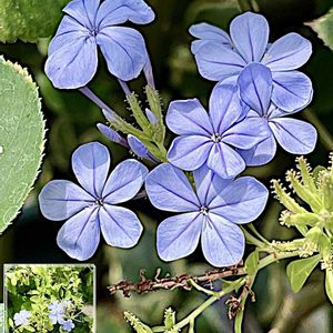 おはようございます👋😃☀️ ルリマツリ🤍ホワイト やっと咲いてくれました~♪ ホワイトは爽やかですが、ガクの線毛はベトベトしてます😆 ブルー💙はまだ蕾も無い状態で開花が待ち遠しいです💦