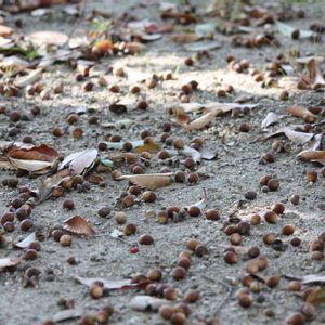 アカガシ(果実=ドングリ) 🌲🍎☘ 林を歩けばドングリが道に一杯落ちています。踏まずには進めません😓 このドングリは食べられるそうです🤔